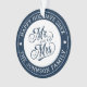 Surrounding both sides is a curved typography design on a rich navy blue background, with the phrase “happy holidays” and family name gracefully integrated into the ornament. This piece serves as a delightful keepsake, perfect for commemorating special moments such as your first Christmas as a married couple, milestone anniversaries like the 50th, or as a heartfelt gift for parents celebrating their enduring love.