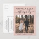 Modern blush pink elopement or private wedding announcement and reception invitation postcard featuring your wedding day photo, "Happily Ever After Party" in a mix of simple typography and a trendy script with swashes and your first names and wedding date. On the reverse, personalise your marriage announcement and invitation, input your wedding website URL address to create a QR code for your guests to scan for more information and to RSVP online, and add your names in a signature-like script.