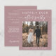 Budget-friendly dusty rose elopement or small wedding announcement and reception invitation. The front features your photo and "Happily Ever After Party" in a mix of simple white typography and stylish white script with swashes. Under your photo, add your first names and wedding date. On the back, personalise your wedding announcement and reception invitation in more detail, input your wedding website URL address to create a QR code for guests to scan to see your wedding photos, all the details and to RSVP online, and add your names in a signature-like script.