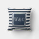 This beautiful keepsake throw pillow featuring your photo with the word love set in an elegant white script. The reverse has a navy blue and white striped background with a square monogram for you to personalise with your initials. Designed by Thisisnotme©