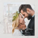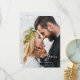 On front: add your own wedding photo, portrait/vertical size. With the text: Thank You written with large modern, handlettered style script. Templates for your names and wedding date. White text.