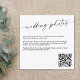 Introducing our "Custom QR Code Wedding Photo Sharing Card" – featured here in a small card size (see other size options) - a personalised and convenient way to encourage guests to share their photos from your special day. This card features a custom QR code that guests can scan to easily access your wedding photo sharing platform. Customise every detail to make this card uniquely yours. Simple, black and white design which you can personalise with a message alongside the QR code. The custom QR code makes it simple for guests to share their photos, ensuring you capture every precious moment from your celebration. Perfect for enhancing your wedding experience and capturing memories, this photo sharing card seamlessly blends style with functionality. Make a statement with this uniquely designed card that adds a touch of convenience to your wedding photo sharing efforts