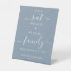 Pick a Seat, not a side. We are all Family once the knot is tied ! Simple yet elegant calligraphy, this wedding welcome seating sign features elegant calligraphy in modern dusty blue. Customise this elegant wedding sign with your names and date!