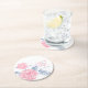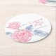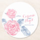 Inked sketch of rose in shades of pink and blue on a white background custom wedding paper coasters. A great personal addition to your wedding tables or for after wedding drinks. Personalise with your bride and groom's names. Perfect for a pink and blue flower themed or garden wedding. Unique ink drawing and design by Sarah Trett. www.sarahtrett.com