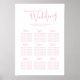 Wedding white with pink text simple modern art table plan poster. Edit this guest seating table chart with your own seating arrangements and guests names for your wedding dinner. Other matching items and colours as available. Designed by Sarah Trett for www.mylittleedenweddings.com