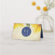 Sunflower Place Card or Escort Card design features a top boarder of yellow sunflowers. Space provided for guest name and table number. Cards reverse to reveal a matching navy blue circle frame with your initials and wedding date on the back. The inside features a matching navy blue colour. Designed to match VG Invites Rustic Sunflower Collection. To see more table assignment cards visit www.zazzle.com/vginvites