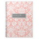 Spiral wedding planner journal with elegant peach orange pink, grey and white classic floral damask vintage pattern, with customisable text to add your own message. Perfect for organising wedding plans and details, a great gift for the bride to be.