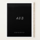 Elegant black minimalist wedding planner cover designed for customisation. This blank personalised notebook is perfect for brides, wedding planners, and couples to add their own names, monograms, or designs. Ideal for organising every detail of your special day with a sleek, modern style.