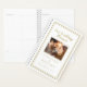 Get organised for your wedding with this modern wedding planner! Design features a simple contemporary minimalist design with a double frame border in elegant chic gold tone colour on a crisp white background. Add your favourite engagement picture and future wedding date to customise your details in chic lettering and script. The back of the planner matches in solid matching gold colour.
