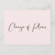 Let your guests know that circumstances require you to postpone your wedding date with this simple light pink wedding change of plans announcement postcard. "Change of Plans" is written in contemporary script on the front. On the reverse side, you can personalise your message in more detail.