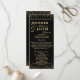 This charming and elegant wedding program features a black background and gold glitter confetti. It is fully customisable with your text, and, you can change the font and colours in order to make it truly yours.