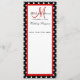 Wedding programs white polka dots on black background with red monogram by Elke Clarke ©. Customise with your wedding menu details, personal information and wedding colours.