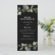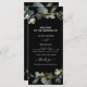 Eucalyptus Greenery Succulent Botanical Watercolor Spring Wedding Program Card on black background - includes beautiful and elegant script typography with modern botanical leaves and greenery for the special Wedding day celebration.