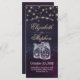 Wedding Program Rack Cards Templates - Elegant Mason Jar & Vintage String Lights on Purple Sparkle Bokeh Lights Background.