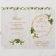 A very modern folded wedding program, combining multiple trends: geometric, marble, metallic (gold) and some special fonts.