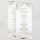 This wedding ceremony program card is the perfect way to keep your guests informed about your special day's schedule. The design features a whimsical and bohemian style, with a faux-gold framing, faint sage-green botanicals, and faux-gold blobs. The card is printed on high-quality card stock and can be easily included with your invitation or handed out to your guests as they arrive at your ceremony. The front of the card features a geometric faux-gold border and whimsical greenery, setting the tone for your special day, and includes a schedule of your wedding day events, allowing your guests to know what to expect. The back of the card includes a list of the members of your wedding party, such as the bridesmaids and best men. The back of the card is adorned with a beautiful faux-gold pattern, adding the perfect finishing touch to this one-of-a-kind design. Whether you're having a traditional or bohemian wedding, this ceremony program card will keep your guests informed and engaged throughout your special day.