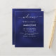 A classic wedding program and menu.  A navy blue background. The blue colour is uneven. White text.  Personalise and add your name, date and both your program and the menu.