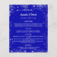 A classic wedding program and menu. A royal blue background. White text. Decorated with faux silver glitter, sparkles. Personalise and add your name, date and both your program and the menu.