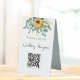 A chic white background. Decorated with watercolored sunflower and eucalyptus greenrey Personalise and add your own QR code to your website with the wedding program.