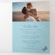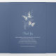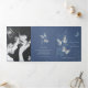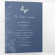 A six-page wedding ceremony program with two photos. Edit this wedding program with your own names, dates, ceremony wording, wedding party attendants, a photo above your own love story, another full-page photo from your engagement or another event, and finally, you can add your own words of thanks on the back. Dark muted blue, light blue, coral pink-orange, and cream butterflies wedding program. Other wedding products, layouts, and colour options are available. Original butterfly inked art and design by Sarah Trett for www.mylittleedenweddings.com on Zazzle.