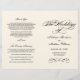 Elegant wedding ceremony program includes a flourished monogram with black calligraphy and scroll design. Personalise the custom text for your bridal party, ceremony information, and thank you message. Note: these text weight paper programs arrive flat and require folding to assemble.