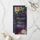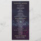 Wedding Program Rack Cards Templates - Elegant Script, Watercolor Floral Pink Roses and String Lights on Purple Sparkle Bokeh Lights Background.