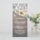 Wedding Program Rack Cards Templates - Vintage Lace, Sunflower and String Lights on Rustic Wood Background.