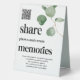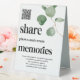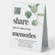 Capture the magic of your wedding and invite guests to share their photos with you. Lovely eucalyptus floral greenery display sign. This innovative sign allows you to scan and upload your favourite graduation photos and guestbook messages to your digital photo album. It's a modern twist on the traditional guestbook, giving you a unique and interactive way to preserve your memories. We can't wait to see what special moments you captured on this momentous occasion. Design includes modern typography and qr code. Unique and stylish way to ask your guests to share photos at your wedding event.