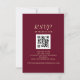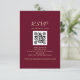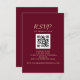Elegant, modern, simple, contemporary, minimalist, gold and burgundy wedding RSVP card with QR code, website and unique hand drawn couple love birds drawing at the back.