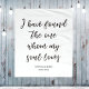 Wedding quote backdrop in white with black text reading "I have found the one whom my soul loves". Customise it with the couple's names and the party date. Elegant reception or ceremony decor.