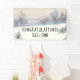 Wedding Reception Banner Winter Blue and White created with a Winter Wonderland theme of snow falling in a forest, with text: CONGRATULATIONS! and the Bride & Groom's Names. To personalise, simply insert your text into our easy template, replacing the sample.