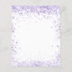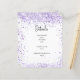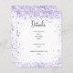 A white background decorated with violet, lavender coloured faux glitter dust. Personalise and add your wedding details. Black coloured letters.