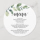 Wedding Reception Dinner, Eucalyptus Greenery Menu