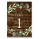 Eucalyptus Greenery Succulent Botanical Watercolor Spring Wedding Table Number Card on Country Rustic Outdoor Wood background - includes beautiful and elegant script typography with modern botanical leaves and greenery for the special Wedding day celebration.