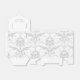 Shown here is the tent style favour box. This box coordinates with the temple wedding invitation and reception invitation. Has the Silver Coronation pattern on all sides of this favour box. Personalised names of the newlyweds across the top flap. To personalise the names, click the "unfolded" button after clicking customise button. Customise this item to your desires.