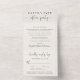 Elegant light cream elopement or small wedding announcement and wedding reception all in one invitation to announce your marriage to family and friends and to invite them to a post-wedding celebration party. "Happily Ever After Party" is in written in simple typography and a stylish script with swashes. Easily customise your elopement/wedding announcement and reception invitation. A tear away RSVP postcard with a customised entree meal choice options provides a convenient and eco-friendly and envelope-free response from your guests.
