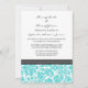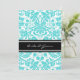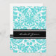 Wedding reception invitation cards for separate reception in elegant and contemporary turquoise light sky blue, black and white elegant and chic classic floral damask vintage pattern. Customise these invitations with your wedding details to invite your guests to your celebration after a private or destination wedding. Available in matching products for all of your wedding needs.