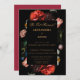 Wedding Reception Party Invitation Dark Red and Black Floral. Copper coloured text is fully customisable. Flower background. The back of the card is set in a dark red background but you can chose any colour you like. Our ALEXANDRIA wedding suite collection is filled with florals on both black and red backgrounds all using a copper coloured text. Moody, elegant and modern.