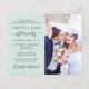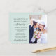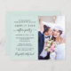 Budget-friendly light mint green elopement or private wedding announcement and reception invitation featuring your photo and "Happily Ever After Party" in modern typography and a stylish script with swashes. Personalise your party or reception details and add your names in a signature-like script. On the back, input the URL address of your wedding website to generate a QR code that your guests can scan to RSVP online and see other details.