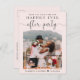 Elegant pink save the date postcard for a reception or party after your elopement or small wedding. The front features your wedding day photo and "Save The Date For Our Happily Ever After Party" in simple typography and a chic script. Add your first names and reception date. On the reverse side, personalise your announcement, input your wedding website address to create a QR code for guests to scan for more information and add your names in a signature-like script.