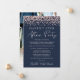 Wedding Reception Rose Gold Glitter Photo Blue Announcement
