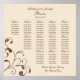 A wedding reception seating chart is an elegant way to direct your guests to their tables instead of using place cards. You can also keep your seating chart as a momento of your wedding and the people who celebrated with you. This wedding seating chart features brown swirls and curls on a cream background. It is available in several different sizes with an optional frame. We also offer a rectangular version of this wedding reception seating chart that fits many standard frame sizes.