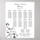 A wedding reception seating chart is an elegant way to direct your guests to their tables instead of using place cards. You can also keep your seating chart as a momento of your wedding and the people who celebrated with you. This wedding seating chart features black swirls and curls on a white background. It is designed to fit in a standard frame and comes in the following sizes: 11x14, 15x19 and 23x29. You can supply your own frame, or order your wedding seating chart with a frame included. We also offer a square version of this wedding seating assignment chart.