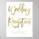 Gold and white wedding reception sign print with gold foil effect (faux, printed as an image) and customisable text - you can add bride's and groom's name and wedding date. Dimensions of the sign print (poster) are 18 inches by 24 inches.