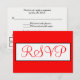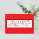 Solid red background. RSVP is written in elegant script inside white and black geometric rectangle. Personalise backside details in black typography against crisp white background. Original Designs by TamiraZDesigns.