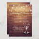 Wedding Rehearsal Dinner Invitation Card Templates - Vintage Champagne Glasses and String Lights on Rustic Wood Background.