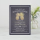 Wedding Rehearsal Dinner Invitation Card Templates - Elegant Faux Gold Foil Pineapple Couple on Navy Blue Floral Damask Linen Background.
