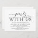 Modern Romantic Calligraphy, Black Script, Wedding Rehearsal Dinner invitation card (Party with us). It is perfect for your wedding rehearsal dinner celebration party, before your best day. Add your details in matching lettering.