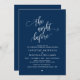 This is the Modern Simple Classy Navy Blue Script Calligraphy, Wedding Rehearsal Dinner Invitation card (the night before). A perfect card, to Invite your beloved family and guests, on your Wedding rehearsal dinner celebration. Add your celebration details in the matching font / lettering.