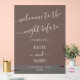 A beautiful way to welcome your guests to your wedding rehearsal dinner. A minimalist elegant white text on transparent black frosted acrylic welcome calligraphy wedding banner sign with customised text. Customise and make it your own!